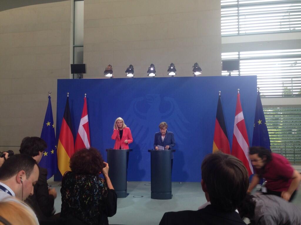 Thorning på besøg hos Merkel i Berlin følges på Twitter