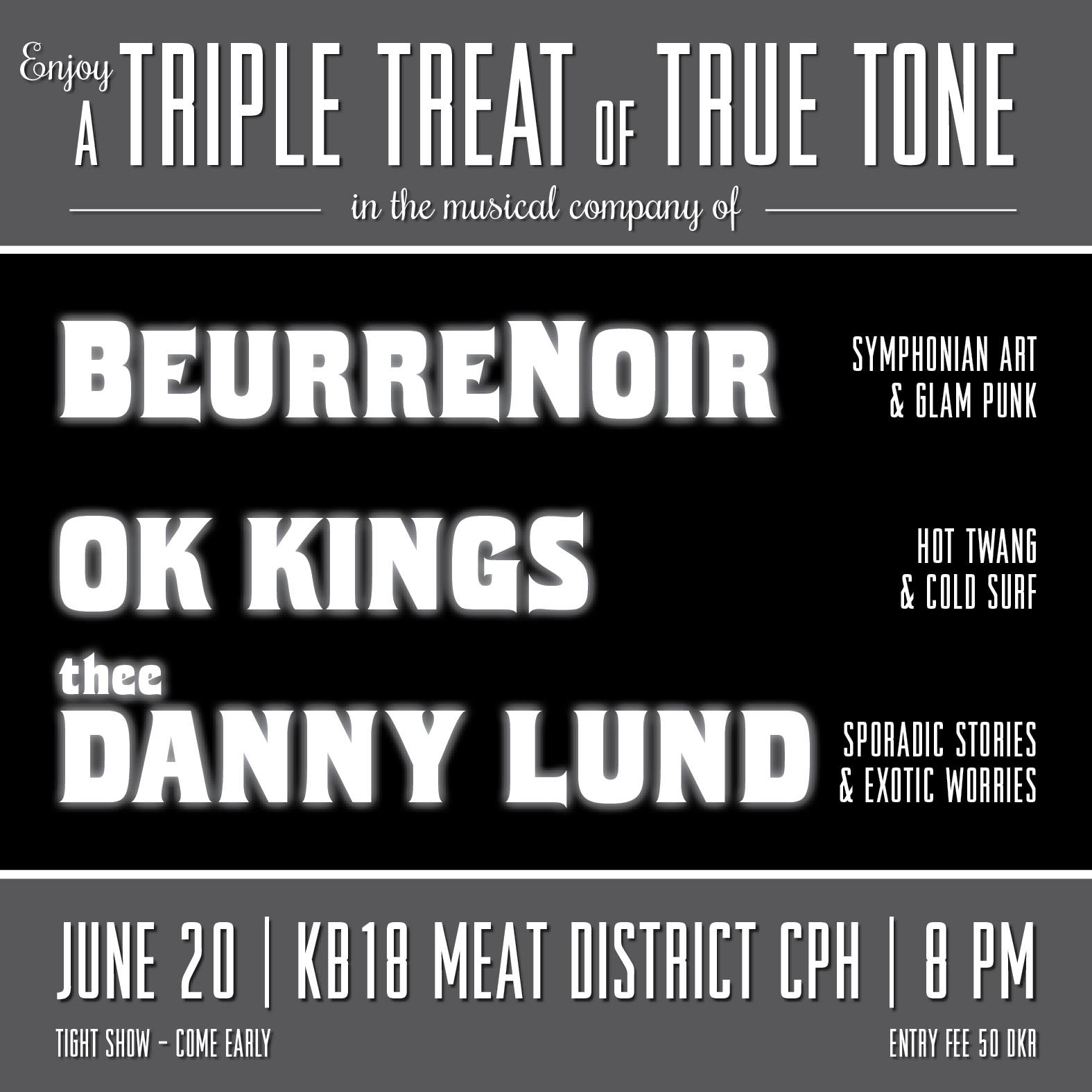 Husk at THEE DANNY LUND + BEURRE NOIR + OK KINGS spiller i aften!