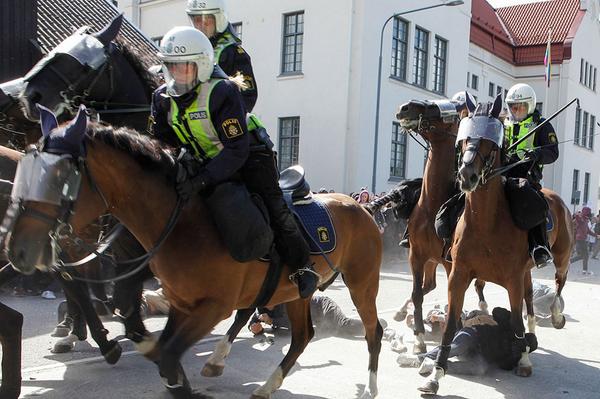 JUST NU: Ridande polis attackerar motdemonstranter under Svenskarnas partis torgmöte i Malmö. bit.ly/1t1ZNwv http://t.co/lpEhWqTcM6—