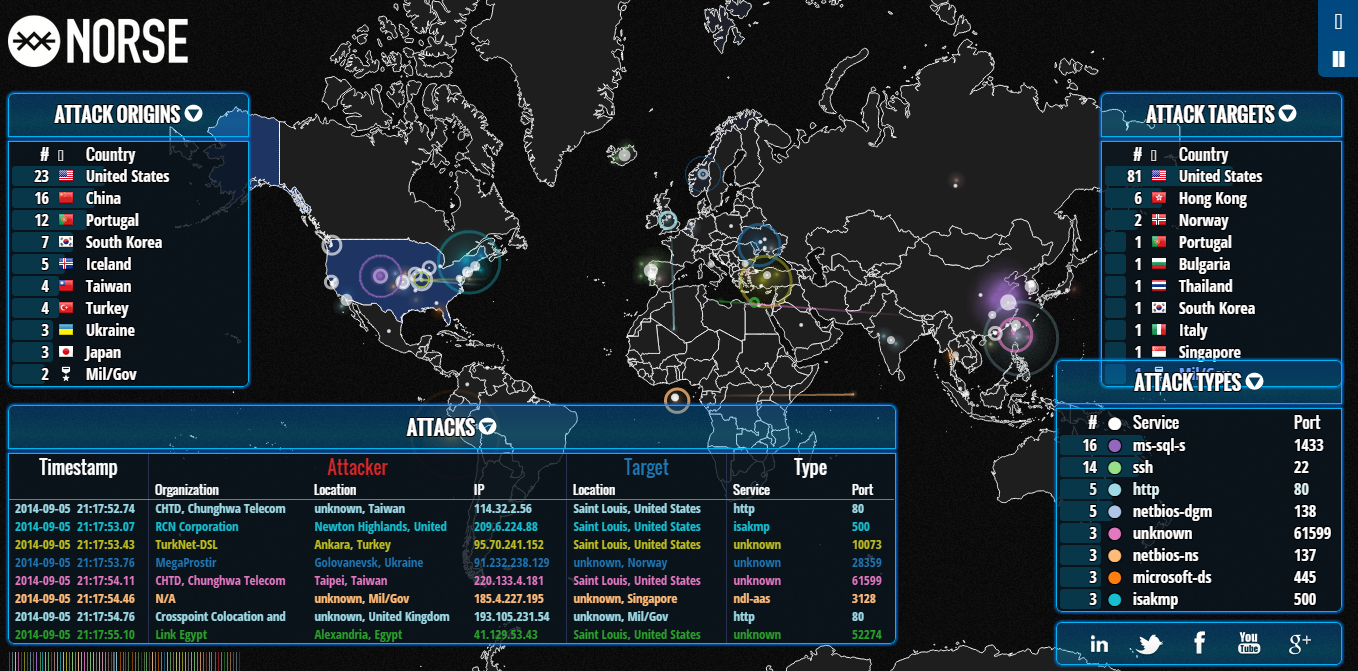 Det amerikanske sikkerhedsfirma Norse Security har lanceret denne vilde applikation, hvor man kan følge cyberangreb. Hvor de kommer fra. Hvem de angriber. Hvilken type angreb. Og en oversigt over de mange, massivce angreb. Det ser helt vildt ud. Følg med her!