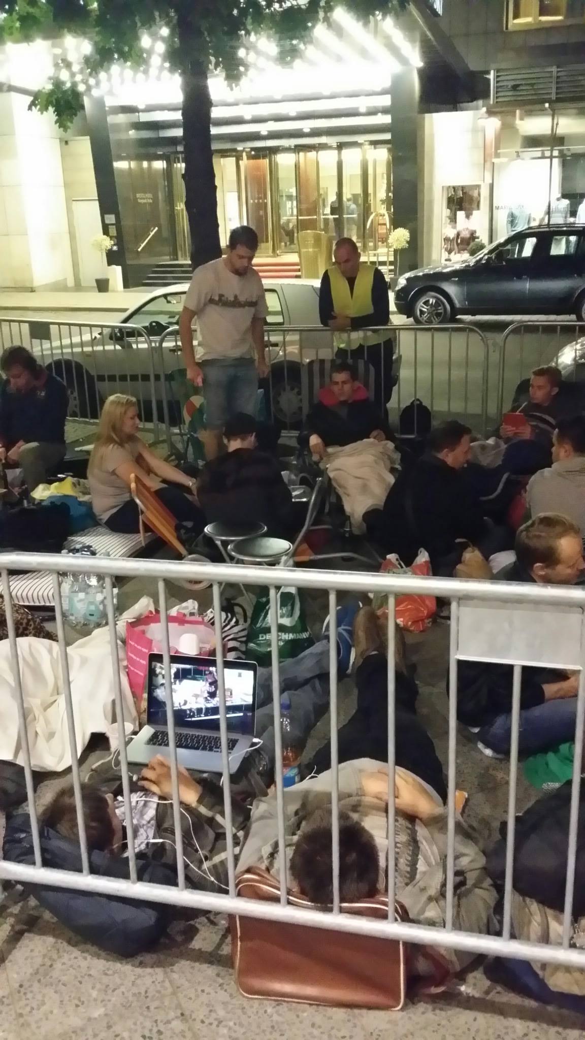Jeg bor ved siden af Apple Store i Berlin. Det er vist første gang at vi har en “iPhone-schlange”. Jeg cyklede lige op og ned af den lange kø, der strækker sig over to af West Berlin’s fineste gader foran Hotel Kempinski. De er næsten alle sammen østeuropæiske mænd med klapstole og 1,5 liters Coca-Cola. De ser ud til at hygge sig, men hvorfor de vil overnatte på gaden for en ny mobiltelefon er mig en gåde. iPhone’s kernepublikum – de rige teenagepiger – ligger trygt og sover derhjemme og venter på at far kommer hjem med den nye telefon. Det pudsige ved hele affæren er at det faktisk er den præcis modsatte aktion af #occupy bevægelsen, selvom de ligner hinanden til forveksling i scenografi.