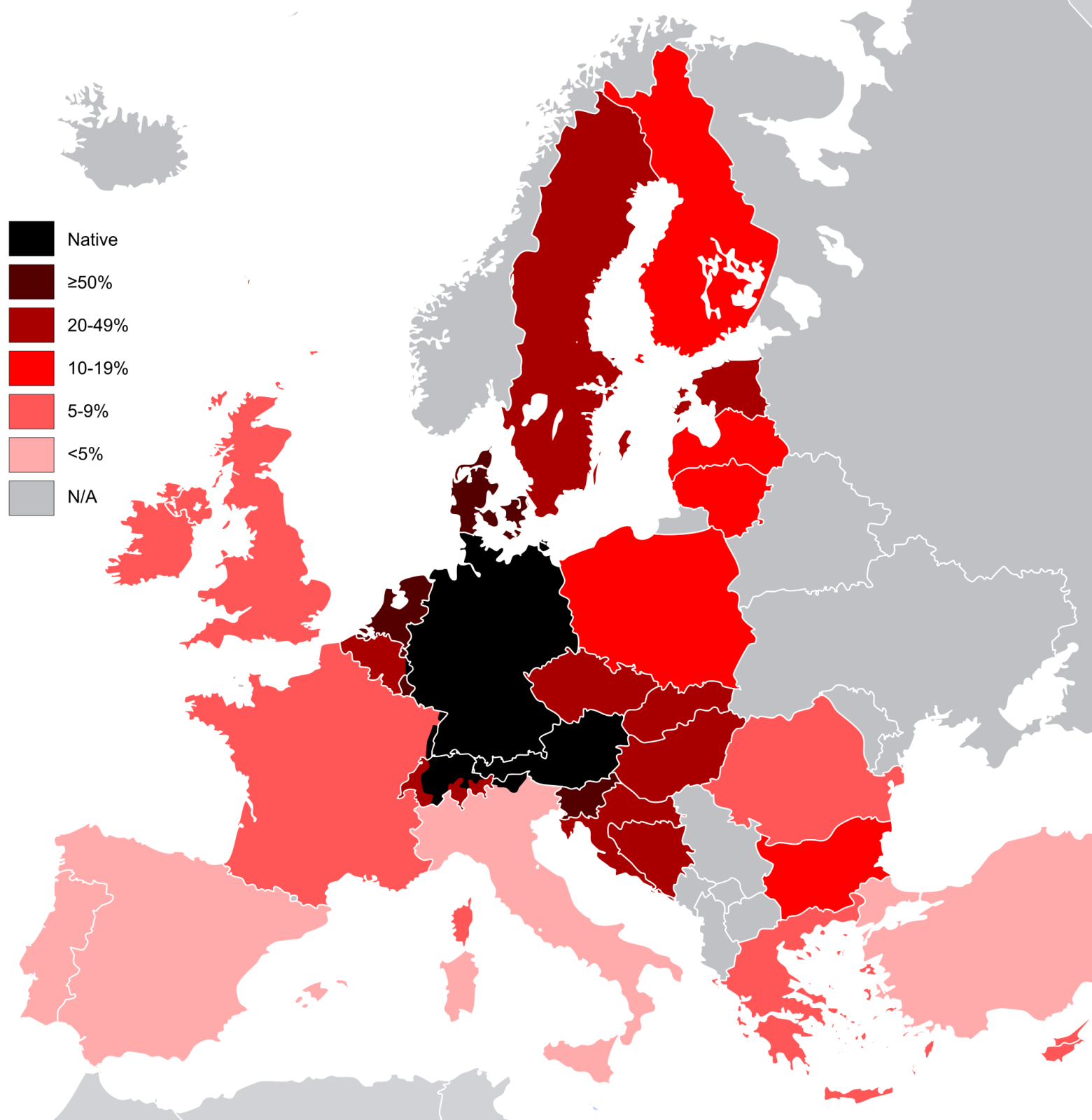 Det tyske sprog tales i mange regioner i Europa, som er hovedsproget for ca. 100,000,000 mennesker, eller 13,3% af alle europæere. Det er også den andet mest talte sprog i Europa efter russisk (med 144 millioner russisktalende), over fransk (med ca. 66 millioner) og engelsk (med ca. 64 millioner). Den infografik viser procentdelen af tysk-talende befolkninger i EU, Schweiz, Tyrkiet, Bosnien-Hercegovina, Liechtenstein og nogle europæiske lilleputlande.