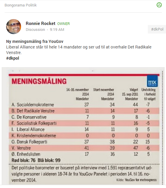 Liberal Alliance står til hele 14 mandater og ser ud til at overhale Det Radikale Venstre.