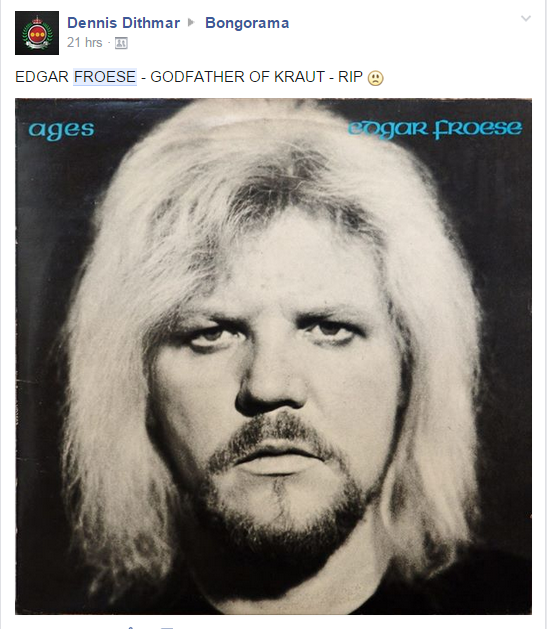 En af grundlæggerne af det banebrydende elektronmusik ensemble Tangerine Dream, Edgar Froese er død. Flere danske musikere har posteret sympatitilkendegivelser på Facebook. Tangerine Dream spillede i Tivolis Koncertsal sidste år til en koncert arrangeret af ArtFreq.