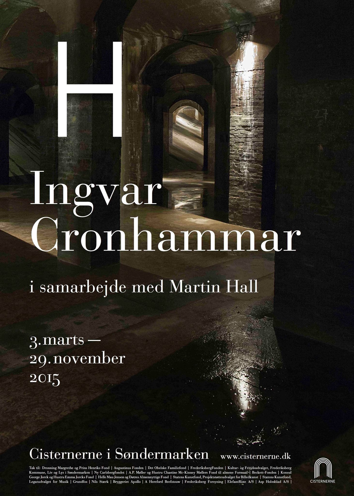 Når Cisternerne åbner dørene for publikum i marts 2015 bliver det med udstillingen “H” af kunstneren Ingvar Cronhammar, en ambitiøs og omfattende installation skabt ud fra stedets særlige udfordringer og klima.