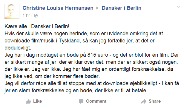 Denne unge pige fik bøden reduceret til 600 euro og indgik en afdragsordning. Læs hele tråden på Facebook om unge danskeres oplevelser med ulovlige filmtjenester og det tyske retssystem.