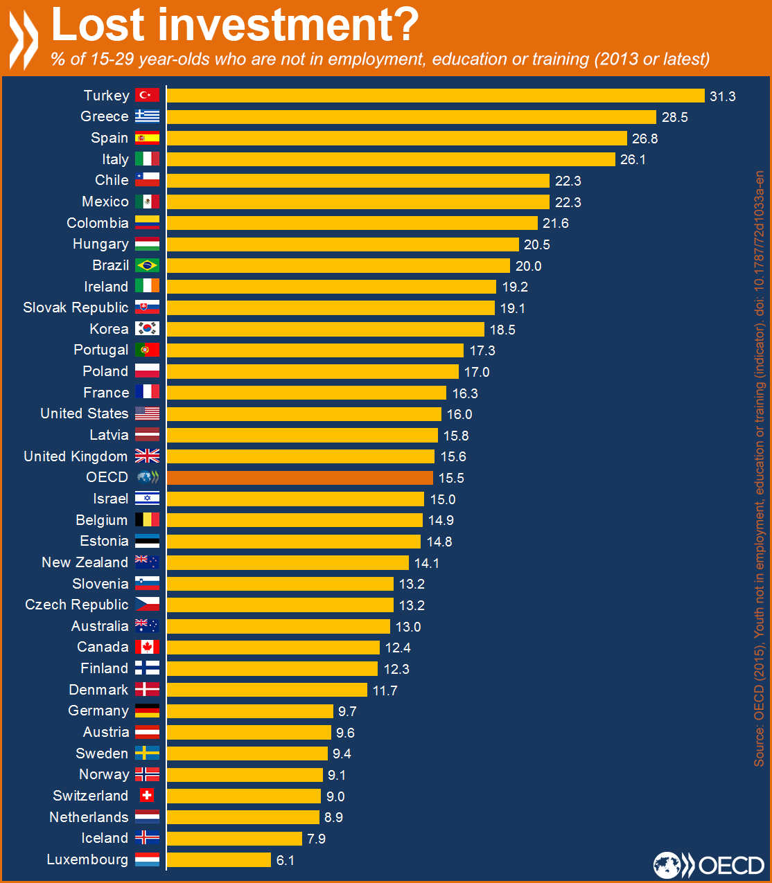 Mere end 35 millioner unge mennesker mellem 15 or 29 år er uden arbejde og ej heller under uddannelse i OECD landene. EU investerer massivt i problemet med systematiske og målrettede investeringer. De lokale regeringer forsøger at gennemføre politiske programmer, der skal skaffe arbejdspladser og uddannelse til de mange unge. Men hvad kan private virksomheder gøre for at komme problemet til livs? En helt lavpraktisk, men meget effektiv, aktivitet kan være at oversætte websteder og sociale medier til andre europæiske sprog. Især til tyrkisk, græsk, spansk og italiensk, der er de områder, der er hårdest ramt. Det vil tillige være en fordel at forbedre Wikipedia på disse sprog. Samtidig bør Internet- og teleselskaber tilbyde gratis online adgang til de arbejdsløse. Denne aktivitet vil samlet betyde et gevaldigt løft til samarbejdet mellem Nord- og Sydeuropa og vil dels være med til at skabe nye arbejdspladser, dels være med til at finde kandidater til eksisterende arbejdspladser.