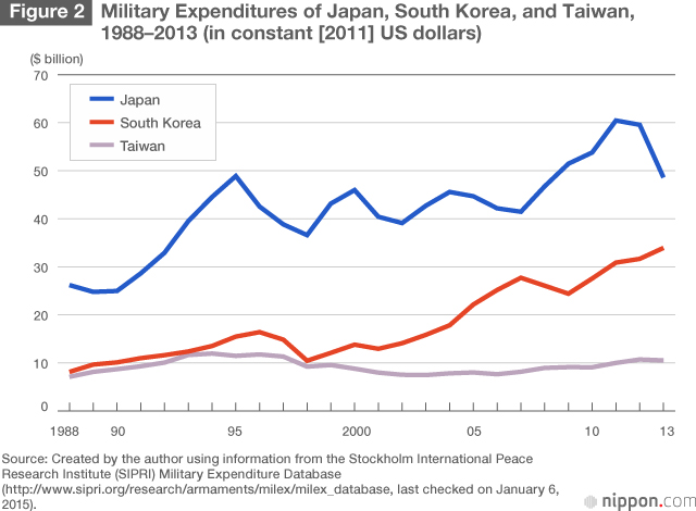 Mere bekymrende er graf nummer 2. Hvad bruger Korea alle de mange nye penge til? Med generalens datter i førersædet og en evig fantom-krig med det nordlige broderland kan det ikke overraske at militærbudgettet stiger tilsvarende.