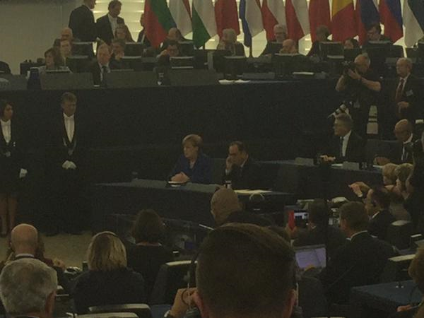 Det er et kvart århundrede siden, at statsledere fra Tyskland og Frankrig sidst var på talerstolen sammen i Europa-Parlamentet. I dag talte Merkel og Hollande om de fælles udfordringer, som Europa står over for. Om at tage ansvar for folk, der flygter fra krig og konflikt. Om at sikre en ambitiøs klimaaftale i Paris. Og om at stå sammen i kampen mod terror og ekstremisme. De er to stærke statsledere, to stærke europæere. De er gode for Danmark og for Europa!