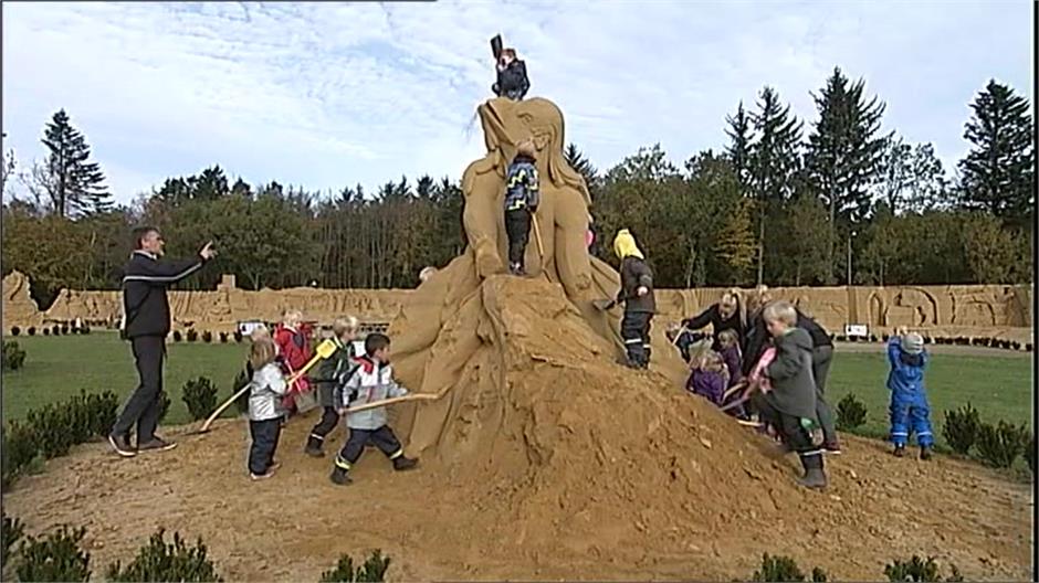 Årets sandskulptur-festival ved Kulturhuset Blokhus blev i dag afsluttet med en ordentlig omgang planlagt hærværk af 28 børnehavebørn.