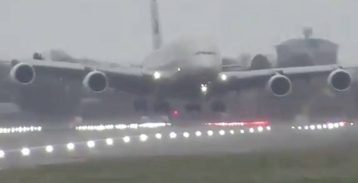 Mange fly blev nødt til at foretage en såkaldt go-around, hvor flyet næsten lander, men hvor piloten opgiver forehavendet i sidste øjeblik, gasser op og foretager et nyt forsøg. Andre blev omdirigeret til andre lufthavne. Og så var der den særdeles dygtige pilot på denne gigantiske Airbus A380 fra Etihad Airlines, som satte sin enorme maskine på jorden i første forsøg efter at have drejet flyet 45 grader i forhold til landingsbanen.