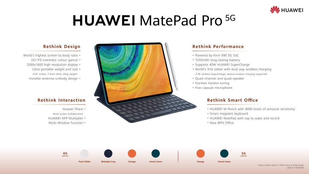 - 5G chipset (Kirin 990)