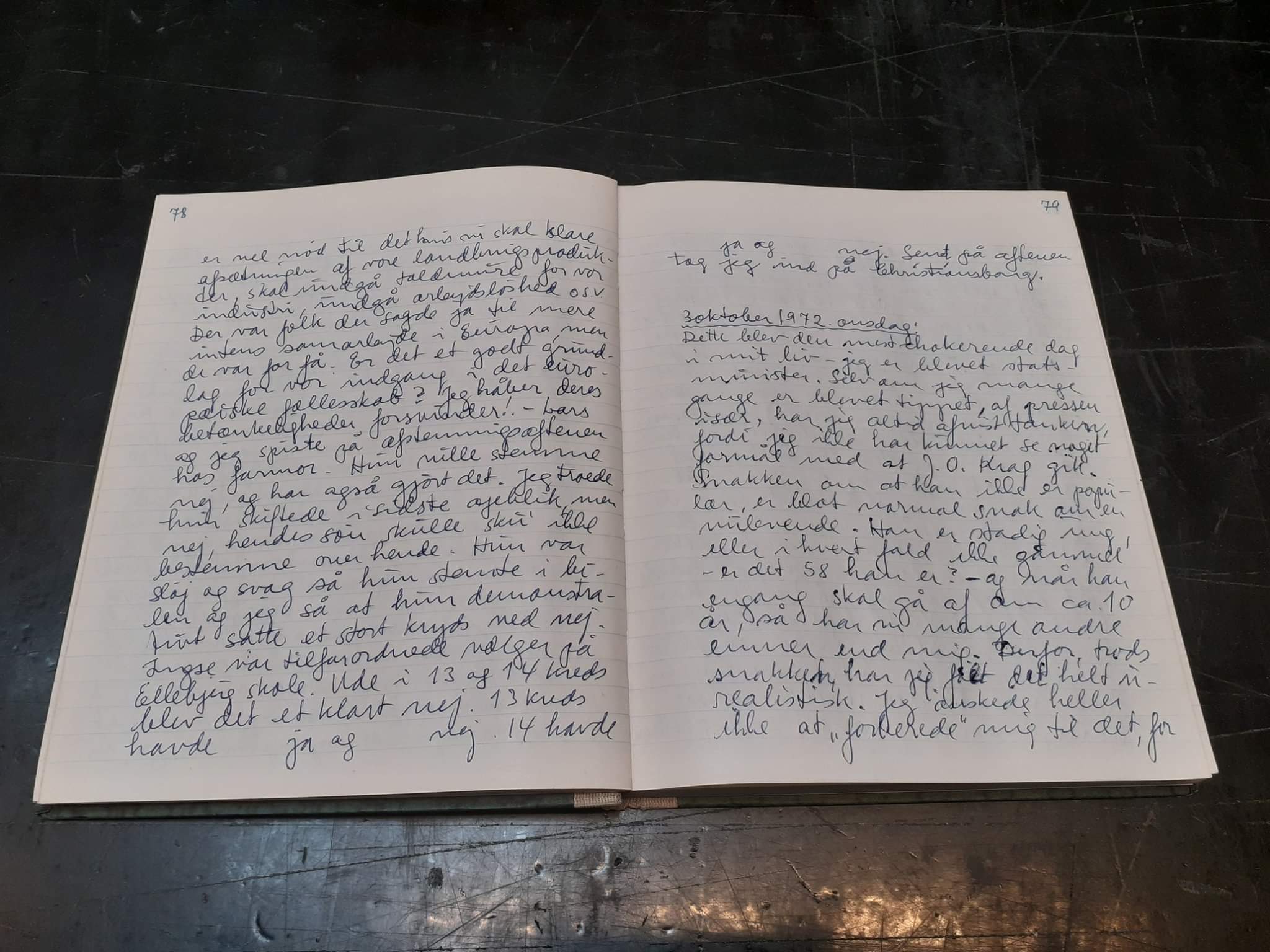 Anker Jørgensen skrev dagbog stort set hele sit voksenliv. Særligt efter han blev Danmarks statsminister i 1972, noterede han små og store begivenheder, private og professionelle. I små lommebøger og papirer gennem dagen og samlet i sin dagbog om aftenen. 📓