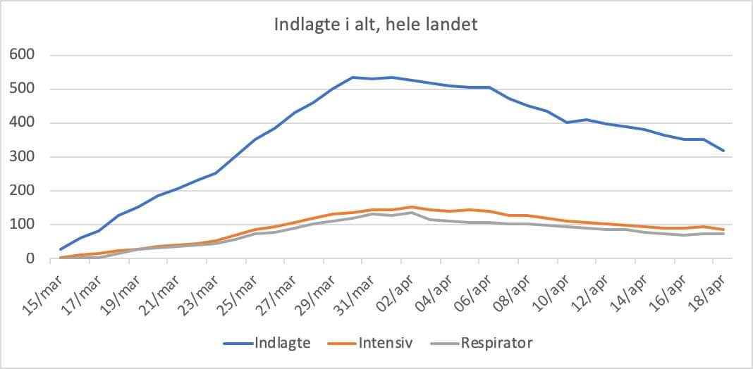 Indlagte og døde, lørdag 18/4: