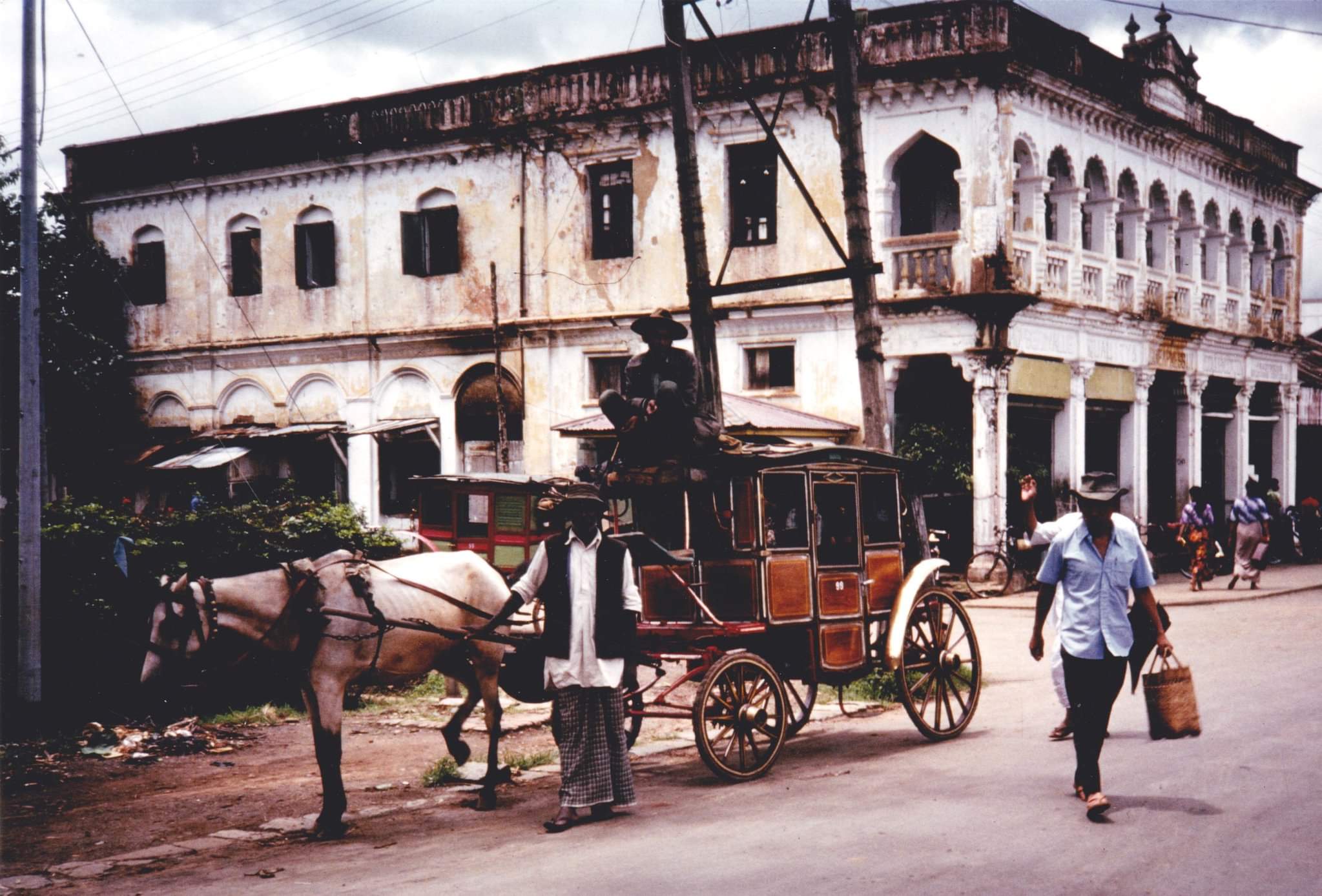 En tur ned ad hovedgaden i Maymyo – en såkaldt ‘hill station’ i bjergene nord for Mandalay – er som en syret sightseeing gennem en kulisse fra en lavbudget-western, der aldrig blev indspillet, fordi producenten løb med kassen, instruktøren sov en brandert ud i et badekar, og helten stak af med en af de kvindelige statister. Udmagrede øg trækker diligencer med blankpudsede, gyldne skærme gennem hovedgaden, der flankeres af to-etagers træhuse med afskallet maling og romantiske svalegange. Hunde lusker rundt om dovne okser og snuser efter madrester langs butiksfacaderne, hvor de halvtomme vinduer vidner om, at det ikke er hver dag, måske ikke en gang hver uge, der kommer nye forsyninger til byen. Fra tehusene overvåges stilheden af mænd med bredskyggede hatte. Mange af dem pulser på tommetykke, hjemmerullede cigarer, der oser som haveaffald.