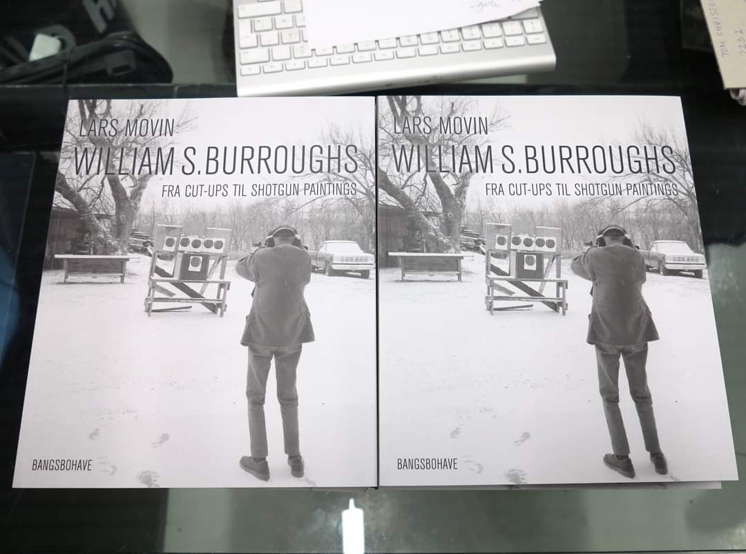 Hvis du i løbet af fredag bemærker tumultagtige tilstande foran byens boghandler, kan det skyldes, at den her viste bog om den amerikanske forfatter William S. Burroughs (1914-1997) udkommer i dag. Titlen er “William S. Burroughs – fra cut-ups til Shotgun Paintings”, forlaget er Bangsbohave, sidetallet er 288 og antallet af illustrationer lidt over 300.