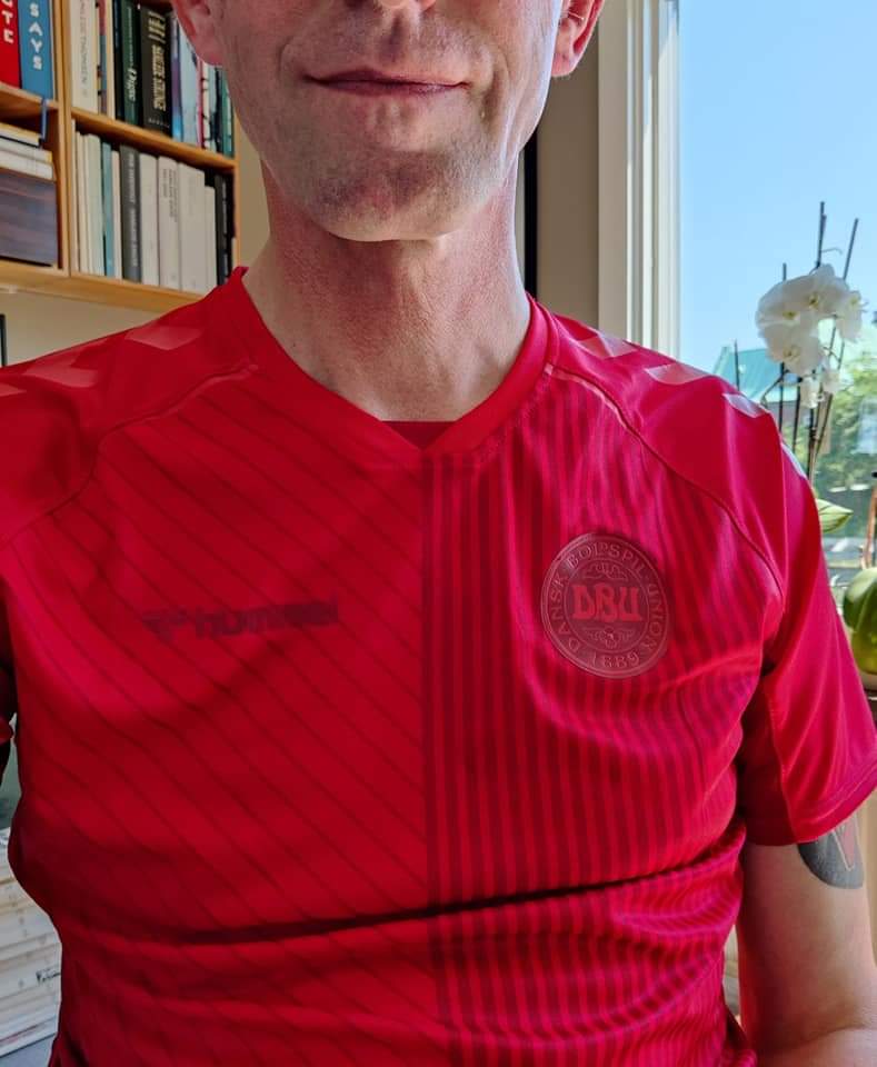 Jeg har for længst iført mig “tredjetrøjen”, som landsholdet spiller i senere. Jeg har også hejst flaget på altanen, og sat den lille flagstang fast med plastik-tape, der bliver et helvede at få af igen…