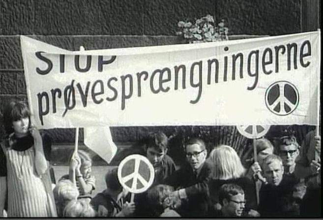 Man skal ikke altid tro på det, man ser. Her er for eksempel et billede fra en demonstration i 1963 på Rådhuspladsen. Det er mig, der sidder længst til højre under atom-emblemet.
