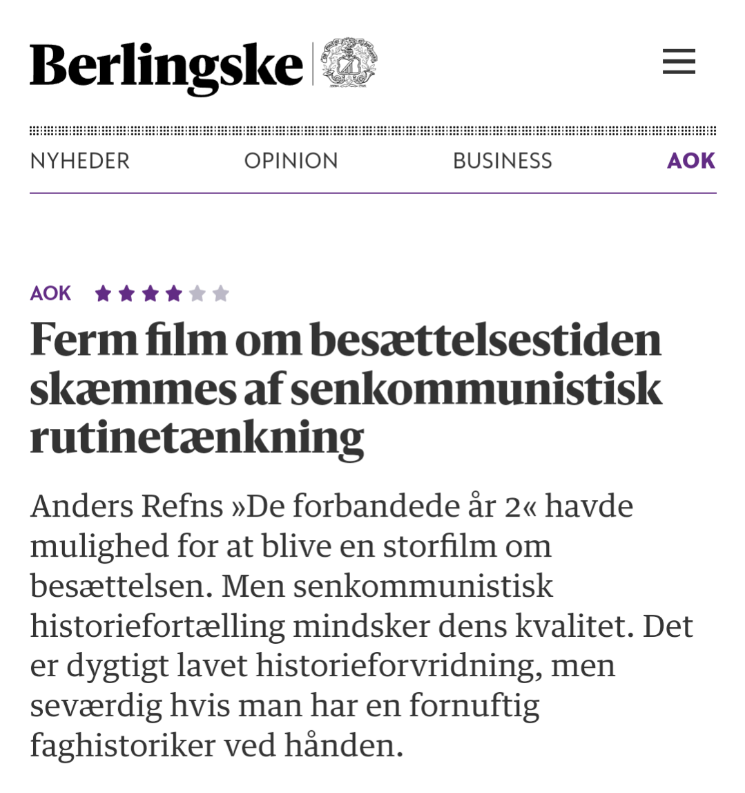I øvrigt forstår Hr Blüdnikow ikke, at TV2 som medfinansierer filmen, ikke har grebet ind og stoppet skævvridningen. Interessant synspunkt i en tid hvor både kunstnerisk frihed og ytringsfrihed står centralt i den offentlige debat.