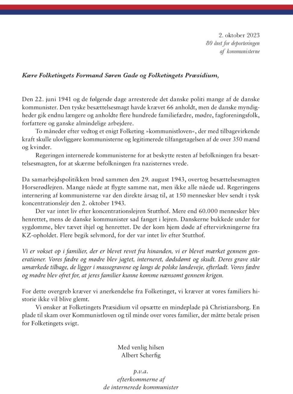 14.00: Tale af Albert Scherfig p.v.a. efterkommerne af de internerede kommunister.