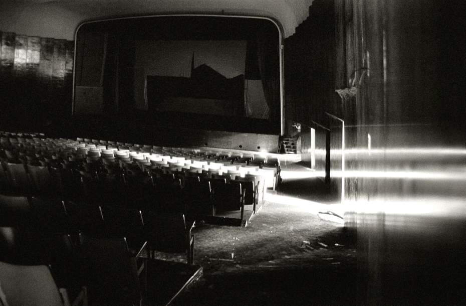Interiøret i Saga Bio, Vesterbrogade 25. Dansk film havde sin storhedstid i 1930-40’erne. Det lykkedes filmproducenten John Olsen fra Saga Film at få staten til at give ham en biografbevilling til en stor Københavnsk premierebiograf. Det blev til Saga Teatret på Vesterbrogade 25.
