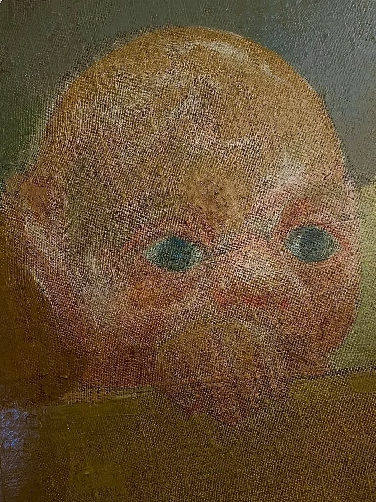 En baby i en barnevogn i maleriets nederste venstre hjørne tiltrak særlig opmærksomhed og omsorg. En programmedarbejder havde en sen nattetime udstanset et hul i babyens mund og placeret en ægte sut i hullet, til stor moro for klientellet.