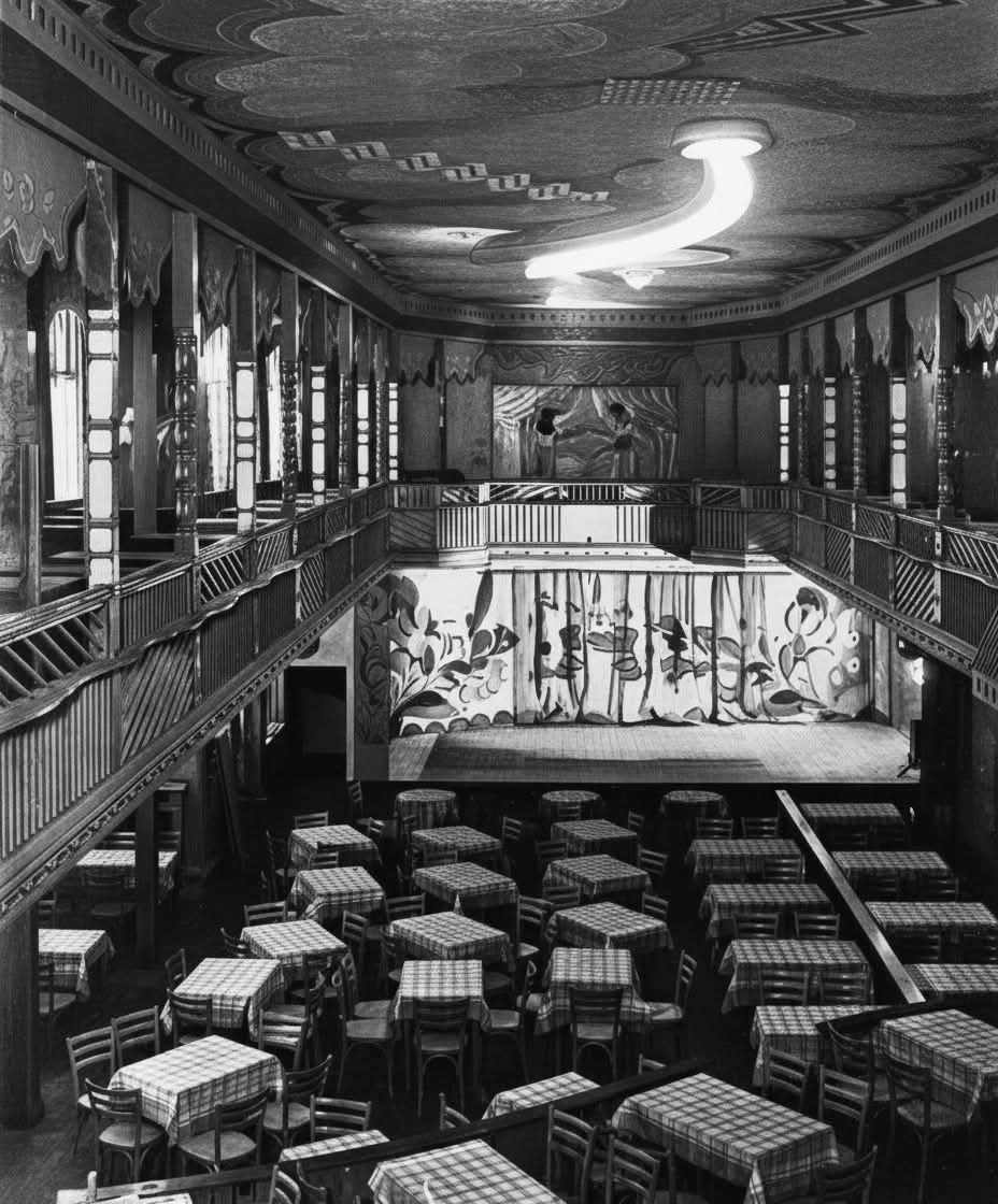 Restaurant Roma, interiører, Jagtvej 85. Bygning blev opført i 1880. Da Ydre Nørrebro vokser frem ved århundredeskiftet til 1900-opstod der også et behov for folkelige forlystelsesteder.