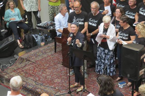 Laurie Anderson synger morgensang på Københavns Hovedbibliotek