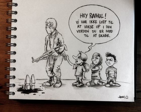 Streg og idé: Adam O. Venstrefløjen opfordrer til sammenhold og eftertanke efter terror-anslag i København.