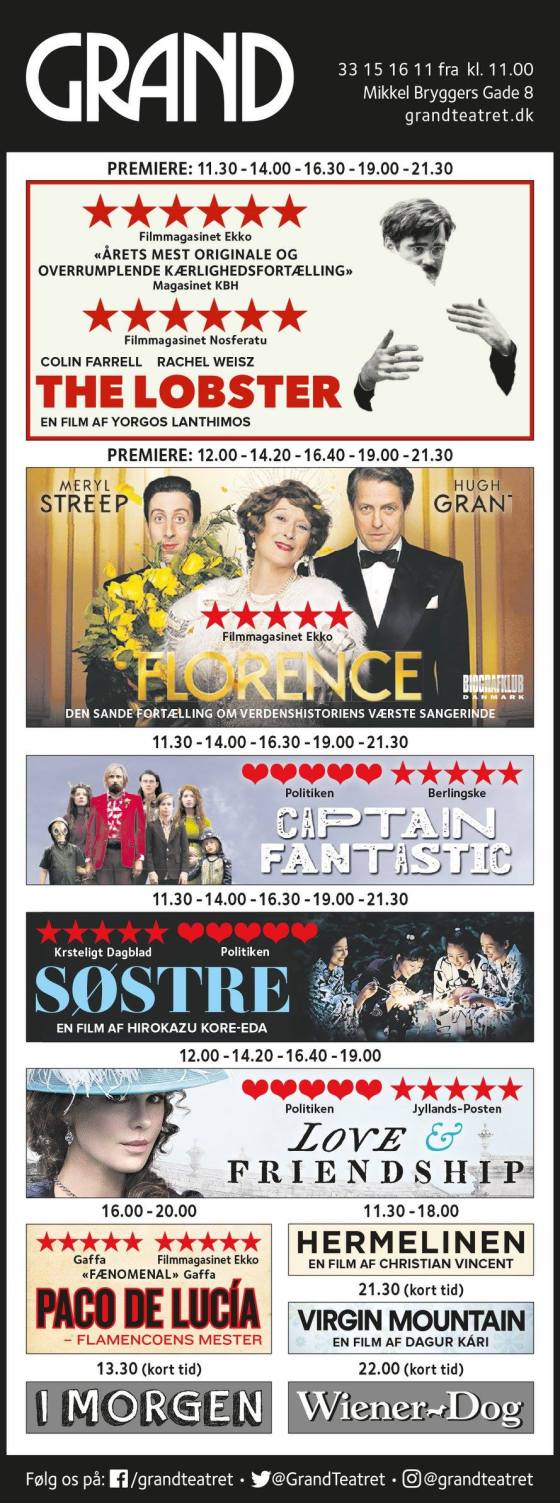 Her er trailers til alle filmene i Grand Teatret i denne uge