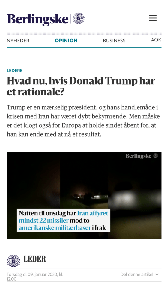 Flemming Chr. Nielsen skriver på Facebook: I dagens Berlingske-leder omtaler chefredaktør Tom Jensen den myrdede iranske general Qassem Soleimani som … Mere