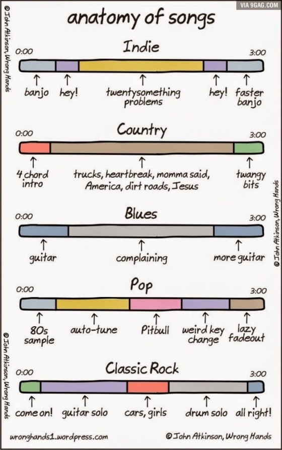 Denne infografik forklarer forskellen på indie, country, blues, pop og classic rock