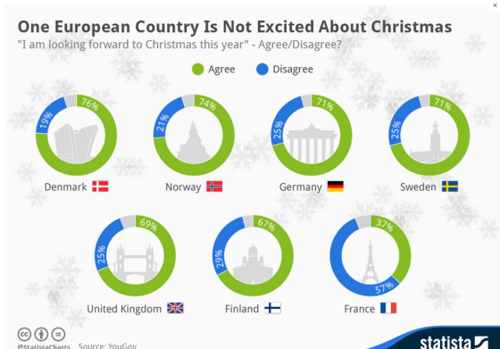 Dagens statistik viser at danskerne er mest begejstret for jul i Nordeuropa. Franskmændene er lidt mere lunkne. Læs mere om … Mere
