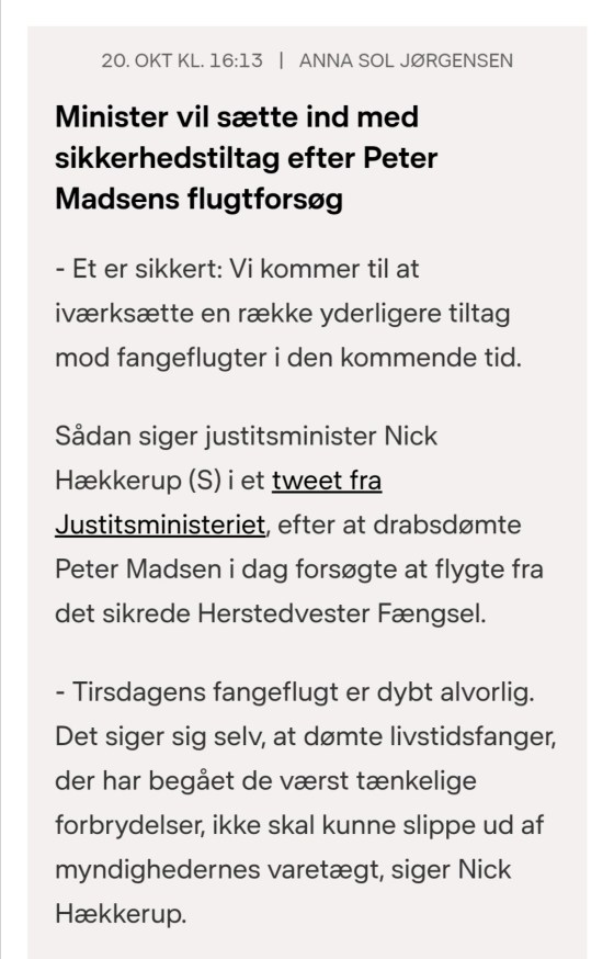 Af Thorkild Højer på Facebook Ro på, justitsminister! Der er meget få undvigelser fra danske fængsler. Det er desuden ikke … Mere
