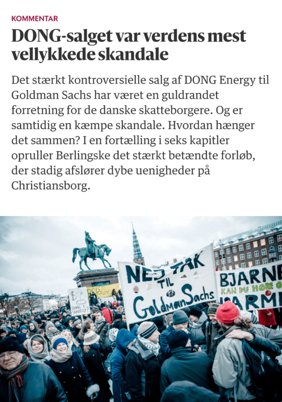 Af Frank Aaen Berlingske Tidende skriver på forsiden i dag, at salget af DONG-aktier til Goldman Sachs blev den bedste … Mere