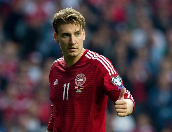 Her er den danske startopstilling med superstjernen Nicklas Bendtner i front.