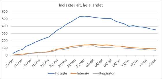 Torsdag 16/4, indlagte og døde: Antallet i alle indlæggelseskategorierne er på det laveste niveau i tre uger. Der er 353 … Mere