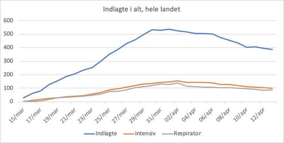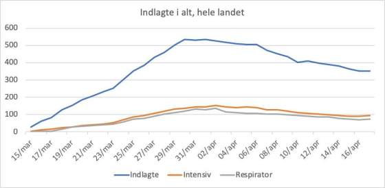 Indlagte og døde, lørdag 18/4: Indlagte er faldet med 10% fra i går (fra 350 til 317). Det er det … Mere