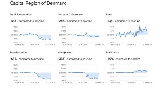 Af Frederik Wiedemann Meget interessante karantæne-data fra Google:Hvor meget mindre bevæger danskerne sig under corona-lockdown? Og i forhold til svenskerne? … Mere