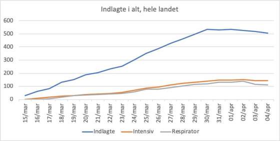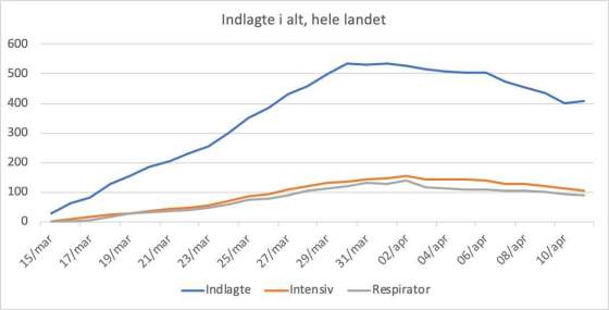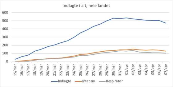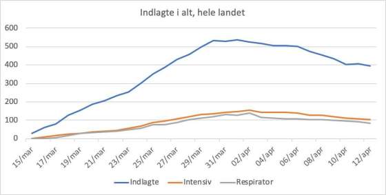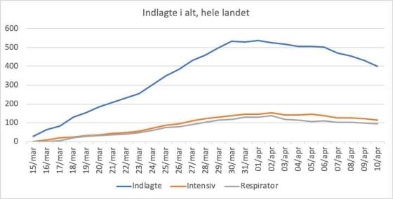 Påskesøndags tal for indlagte og døde: Antal indlagte er faldet med 12 til 396. Dermed er der nu under 400 … Mere