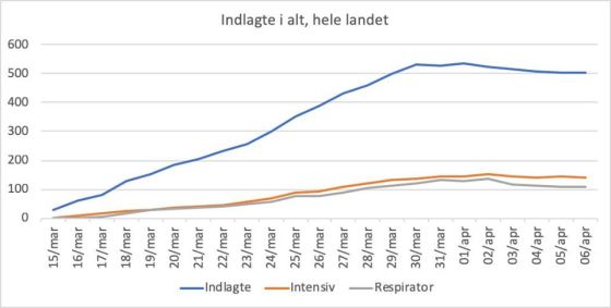 Mandagens tal for indlagte og døde: Antal indlagte fortsætter fladt i alle kategorier med 503 indlagte (-1 fra i går), … Mere