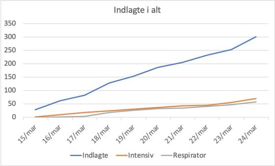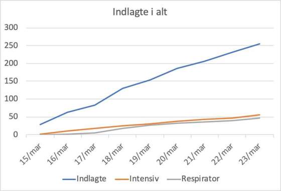 Af Frederik Wiedemann Mandagens tal fortsætter lineært: Antal indlagte er med 254 personer 22 højere end i går. De seneste … Mere