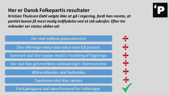 For 100 dage siden valgte DF ikke at gå i regering, fordi partiet mente at kunne få mere indflydelse ved … Mere